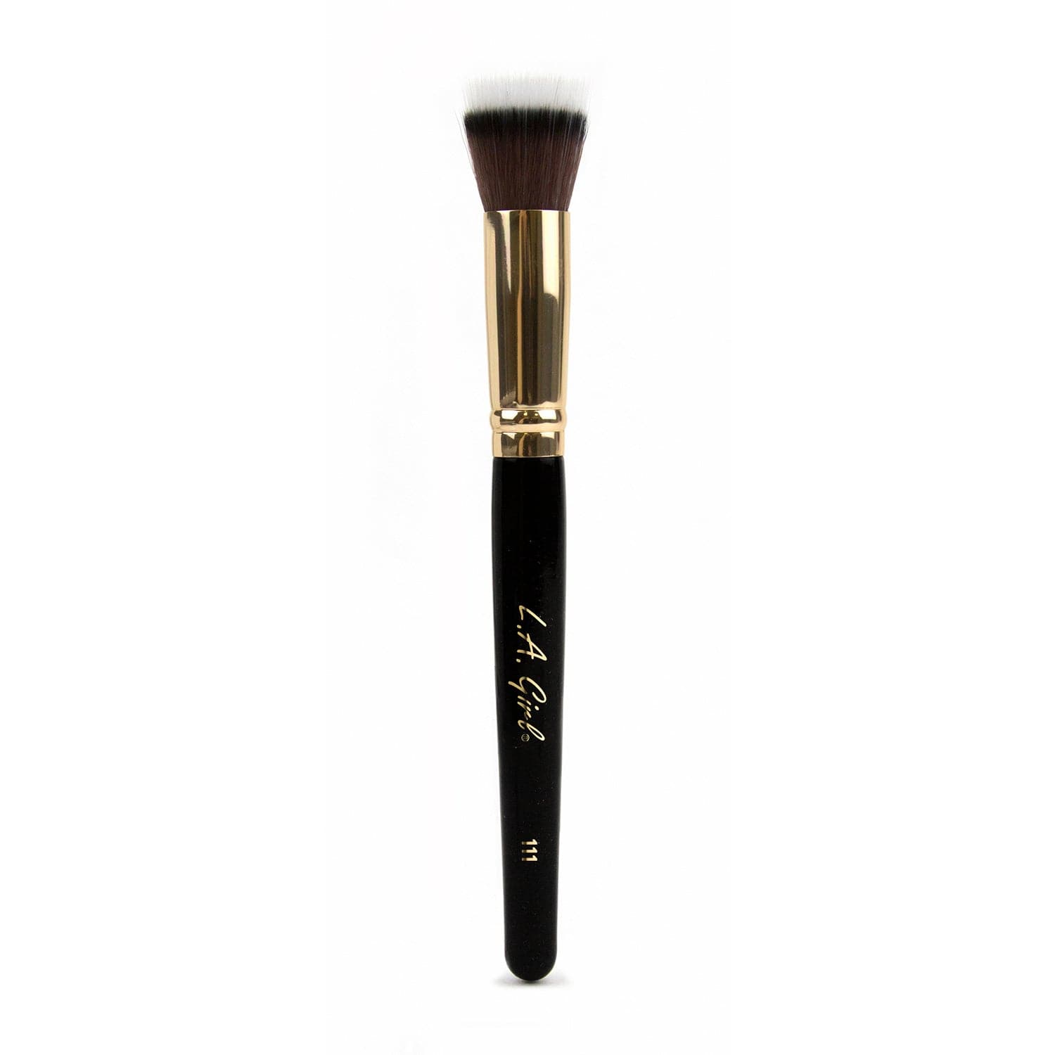 Small dual-fiber bristles designed to lift and deposit liquid, cream, or powder products onto hard-to-reach areas for an airbrushed finish. Soft synthetic fibers ensure smooth, precise application and seamless blending. Features a sleek, lacquered handle crafted from sustainably sourced birch wood.